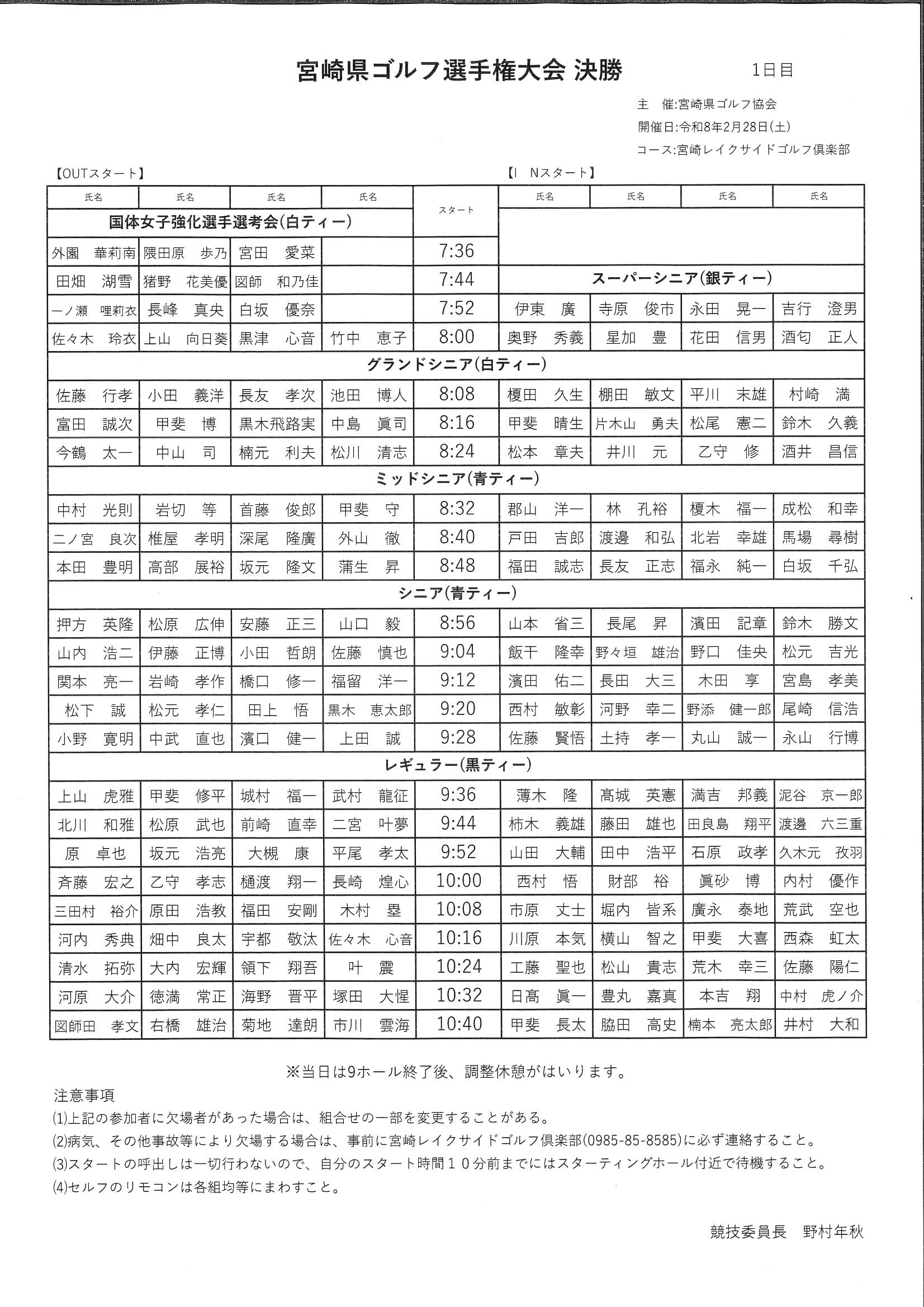宮崎県ゴルフ選手権大会 組合せ(1日目)