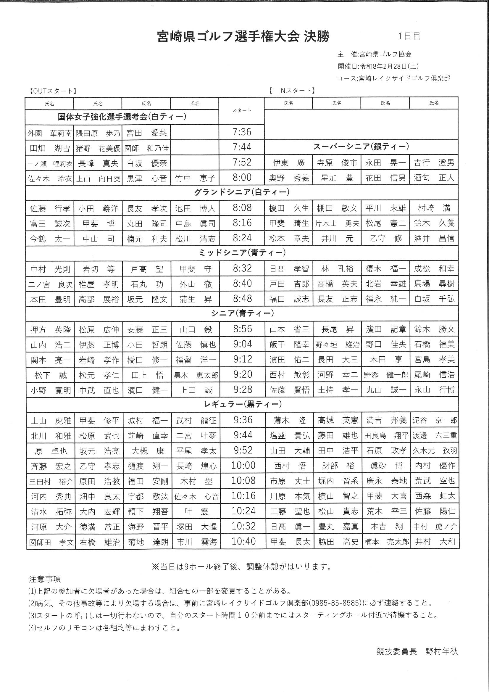 宮崎県ゴルフ選手権大会 組合せ(1日目)
