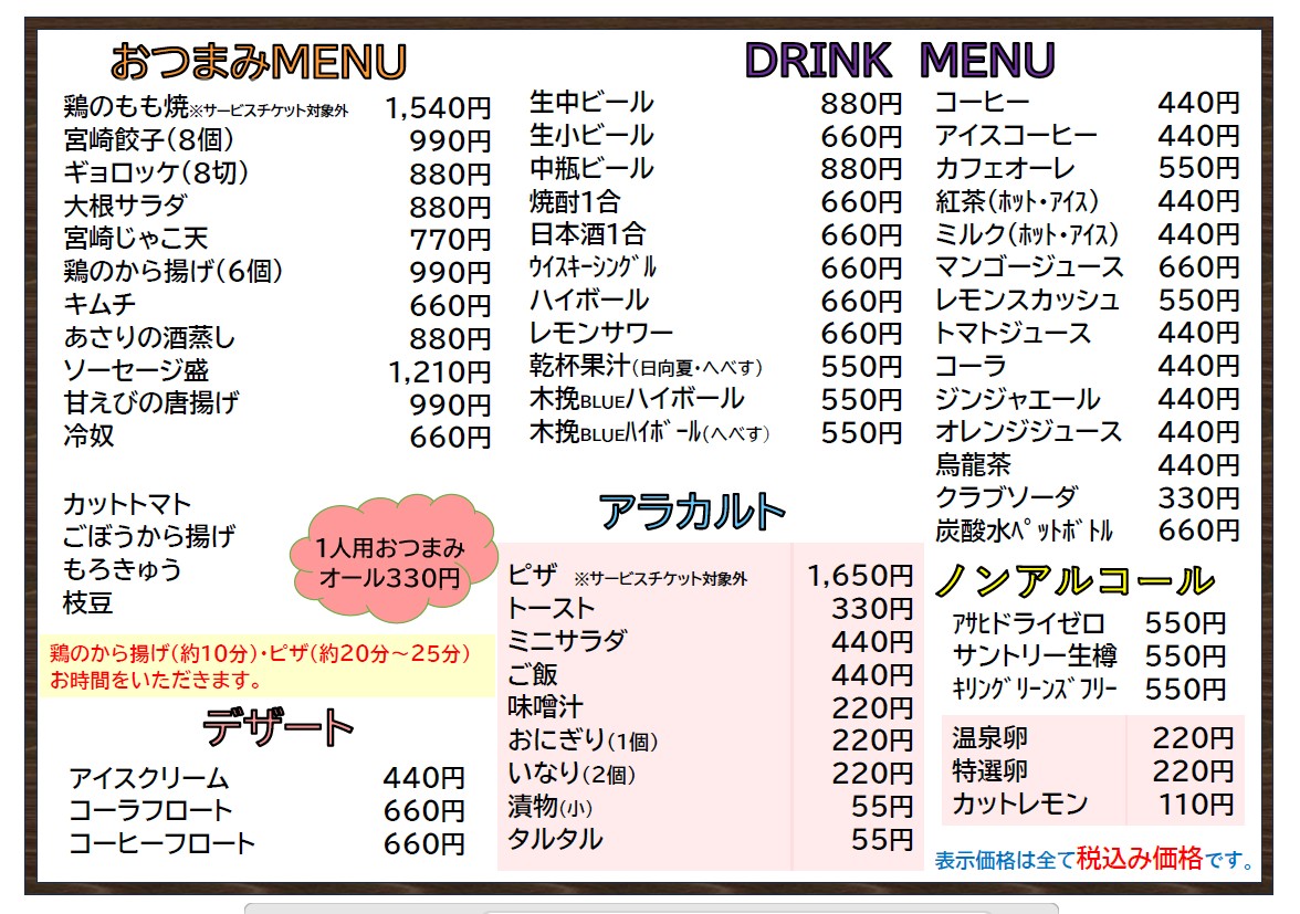 ドリンクメニュー